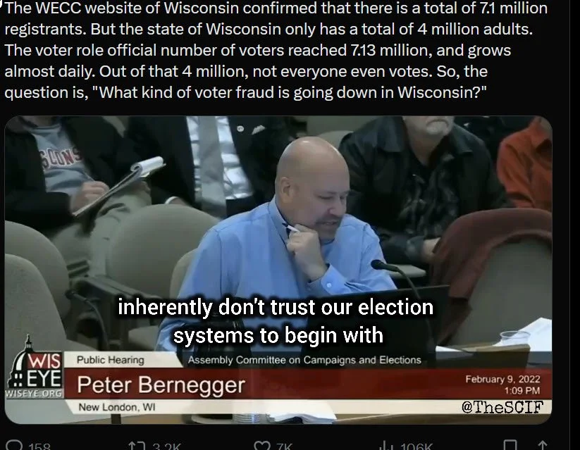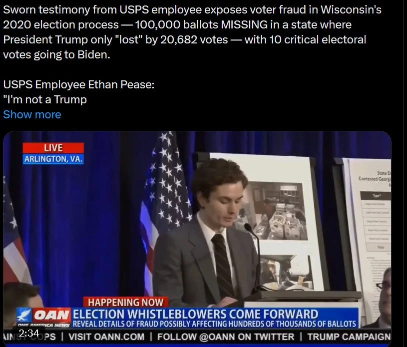 "I'm not a Trump supporter. I'm not a Biden supporter either, but something profoundly wrong occurred in Wisconsin during the Presidential election and the American people have a right to know about it!"