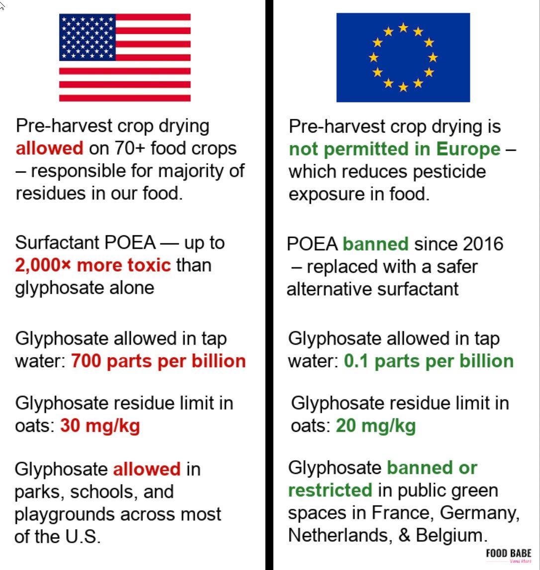 Roundup (glyphosate) in US vs Europe: Americans are being poisoned