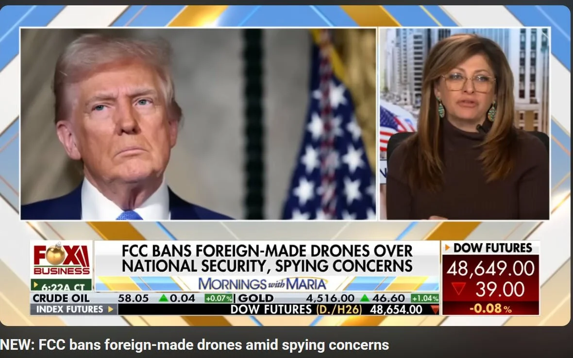 Topics include U.S. vs. China competition in drone tech (China sanctioned Bry and Skydio), ethical AI use, and future warfare implications.