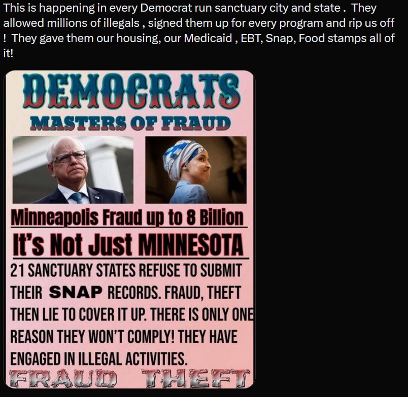 SNAP/CalFresh: Lower-profile but ongoing; EBT theft/fraud reduced recently via tech, but part of national improper payments (not billions in CA-specific fraud like unemployment). Viral posts lump it with "rife improper payments" alongside others.