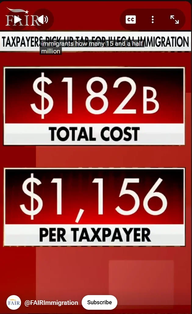 Net Annual Cost: According to a 2024 Heritage Foundation report, the current illegal alien population imposes a net fiscal cost of at least $110 billion per year on U.S. taxpayers. If current trends continue, this is projected to rise to $169 billion annually by 2029.