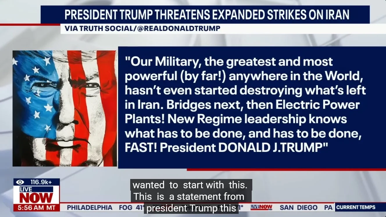 President Trump is threatening to expand strikes on Iran. He says the U.S. has not even started to destroy what's left of Iran. Here is what he had to say via Truth Social: "Our Military, the greatest and most powerful (by far!) anywhere in the World, hasn’t even started destroying what’s left in Iran. Bridges next, then Electric Power Plants! New Regime leadership knows what has to be done, and has to be done, FAST! President DONALD J.TRUMP"
