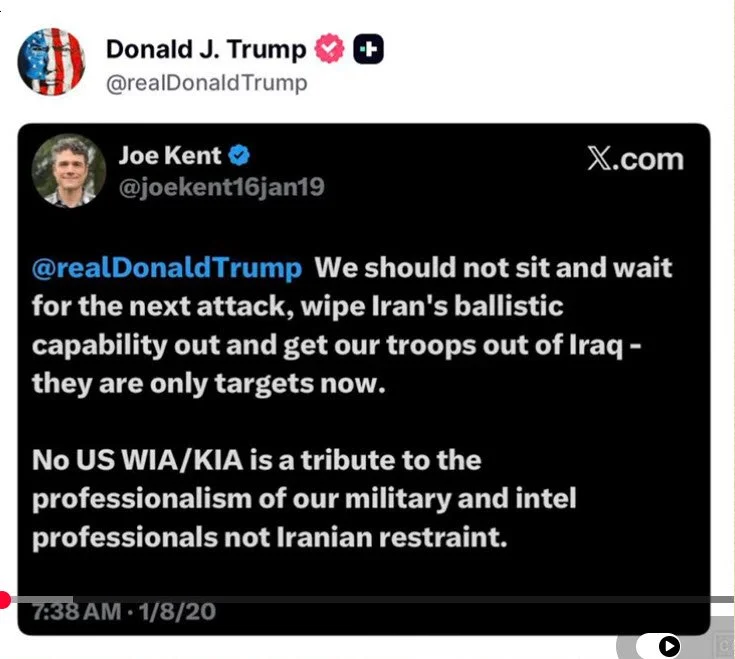 The logic behind determining whether a threat is "imminent" often hinges on the distinction between capability and immediate intent. How do you second guess a decision like Trump’s when so much is a stake with the inaction of Obama and Biden that only enabled Iran.