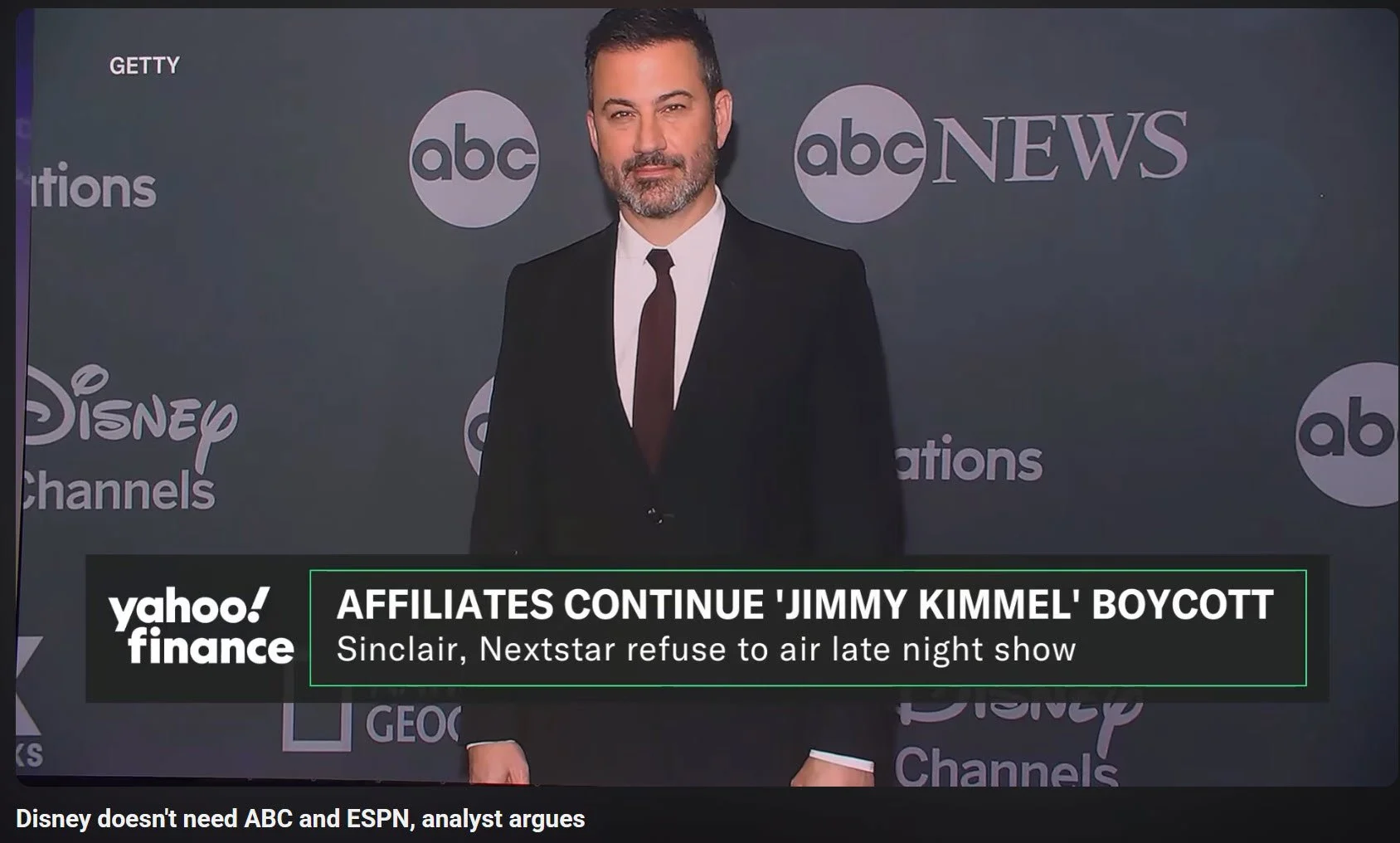 Jimmy Kimmel Live! returned to ABC airways on Tuesday after being temporarily suspended for the late night host's political comments following the assassination of Charlie Kirk. Nexstar Media Group (NXST) and Sinclair Broadcast Group (SBGI) have united in boycotting Jimmy Kimmel's show from broadcasting on their local station. LightShed Partners partner and media & technology analyst Rich Greenfield weighs in on Disney's (DIS) ownership of ABC while facing broadcast pressures. Hear why Needham & Company's Laura Martin thinks Disney should just shut down ABC in an interview with Yahoo Finance earlier this week. Plex CEO Keith Valory also commented that media companies have a "moral obligation" to uphold free speech practices against government pressures.