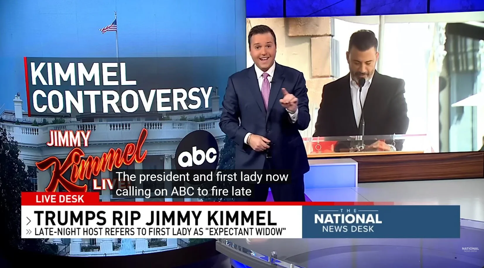 2. April 2026 Controversy: Kimmel’s mock White House Correspondents' Dinner monologue included a joke that Melania Trump had "a glow like an expectant widow."