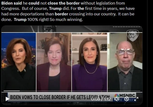 Trump challenged Biden PROVE ME WRONG about not closing the border and allowing between 15 to 20 million unvetted aliens into the country. This group included losing 300,000 children, permitting 30,000 Chinese of military age to enter, and many more that didn’t even address the gotaways. Trump proved him wrong by closing the border completely without Congress in less than two months.