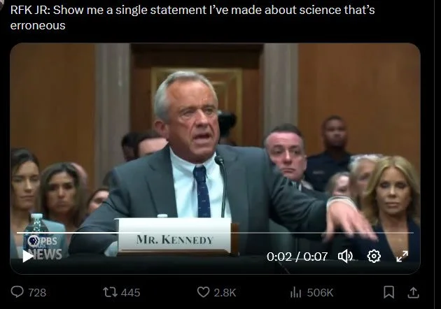 RFKjr challenges anyone to PROVE ME WRONG on any statement he made about science. The left and big Pharm can not deal with the proposition that RFKjr and MAHA want to verify the science and safety before recommending a vaccine. If they are so sure of their facts why not accept the challenge and prove Kennedy wrong?