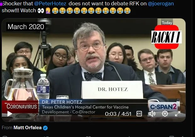 Dr. Hotez ultimately declined the debate.5 He has stated that he is willing to speak with Joe Rogan, but that he would not engage in a debate with RFK Jr., arguing that a public debate is not the appropriate format for discussing established scientific consensus and that doing so would lend false equivalence to misinformation. Hotez is a coward, liar and slanderer knowing he could not deal with the facts to stand up to RFKjr.