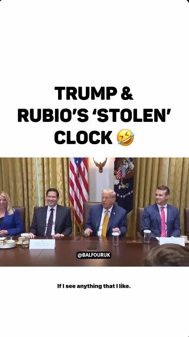 Grandfather clock deadpan (cabinet-related event, widely reported): Trump bragged that he had “stolen” Rubio’s grandfather clock to furnish the Cabinet Room. When the story came up, Rubio looked over with a straight face and replied, “What clock?” The room erupted—the perfect low-key, self-deprecating pivot that plays into the “overworked but unflappable” persona colleagues love.