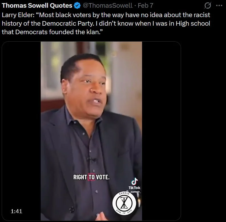 His writing often emphasizes empirical evidence, unintended consequences of policies, the dangers of government overreach, critiques of affirmative action, and skepticism toward "visions of the anointed" (self-congratulatory elites pushing well-intentioned but flawed ideas). He's a prominent voice in conservative and libertarian circles, particularly as a leading black conservative thinker.Sowell has received honors like the National Humanities Medal (2002) from President George W. Bush. He's known for his clear, fact-driven style and syndicated columns that appeared in many newspapers.Recent discussions around him include critiques of education systems turning into "propaganda agencies" (e.g., in 2026 interviews), warnings about AI misuse (like deepfakes of his voice), and ongoing relevance to debates on DEI, equity vs. equality, and social policy.