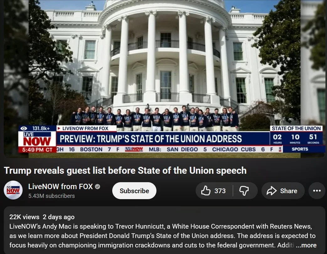 The "Patriotic" Selection: Trump invited the gold medal-winning U.S. men’s hockey team and a 100-year-old Korean War veteran. Pundits like Marc Thiessen and Laura Ingraham noted these guests evoked a sense of "nationalist zeal" and "unabashed celebration of America" that transcended policy.